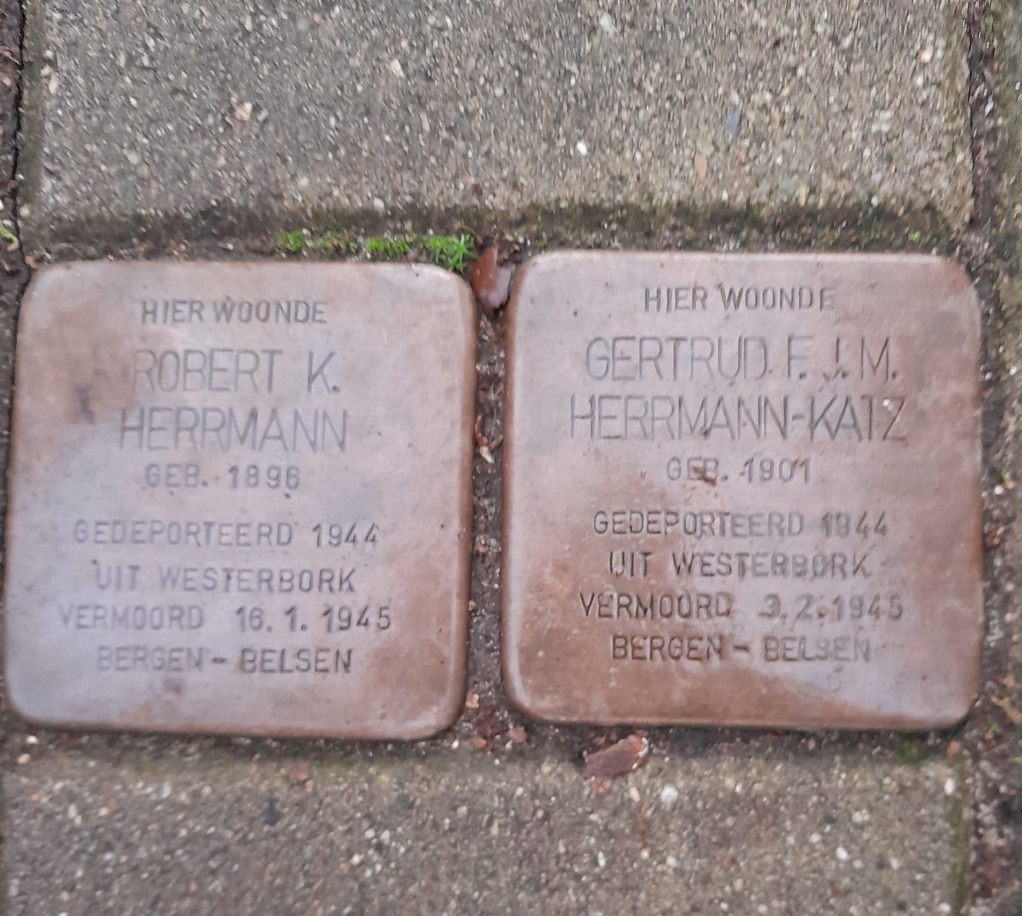 Here lived Gertrude F.J.M. Herrmann-Katz, born 1901, deported 1944, murdered February 3, 1945, Bergen-Belsen.