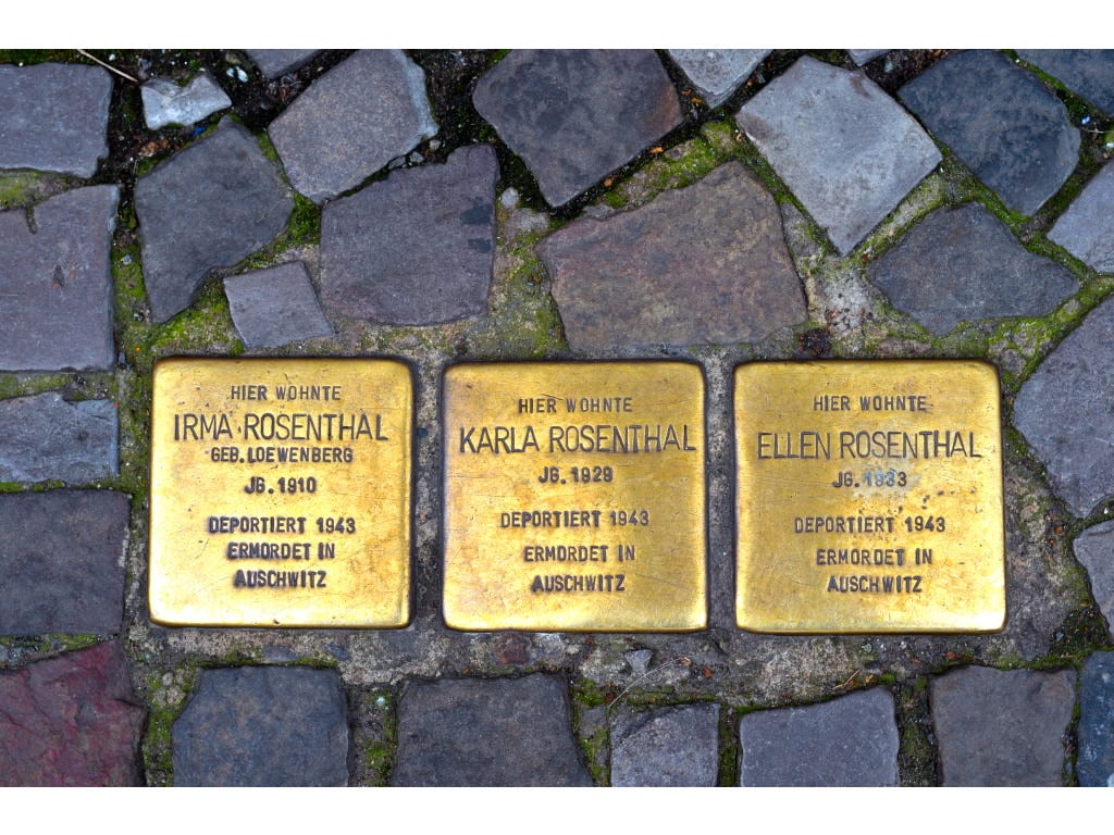 More than 100,000 Stolpersteine have now been installed in 26 countries throughout Europe, and they are sobering reminders (especially in Berlin which once had a very large Jewish population) of what came to be known as the Holocaust. They are the work of German artist Gunter Demnig, who has overseen nearly every installation.